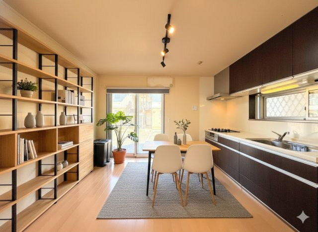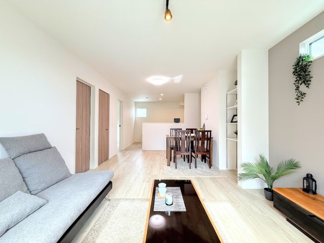 【居間・リビング】◆家族で食卓を囲むダイニングスペースと、ソファでゆったりくつろぐリビングスペースがしっかり区切られているので家具の配置や用途を使いわけしやすいです。(家具はイメージです)
